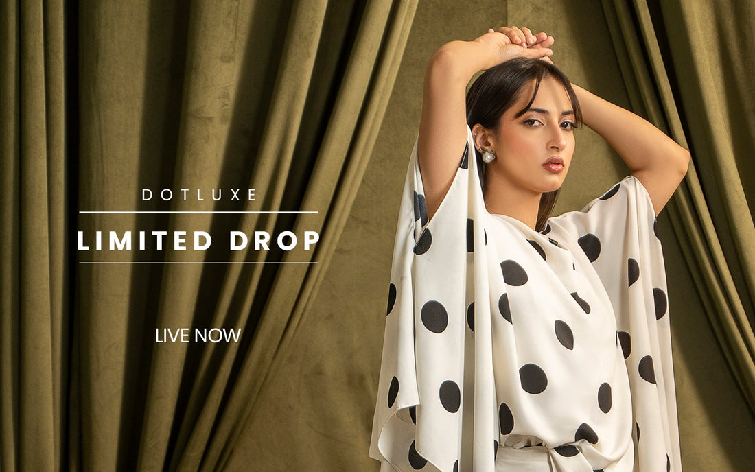 A light and elegant look featuring a flowing polka-dot cape top paired with white palazzo pants. The big dots add a bold touch to the soft, draped style, creating an effortless and confident look.- Rs.15,000.00