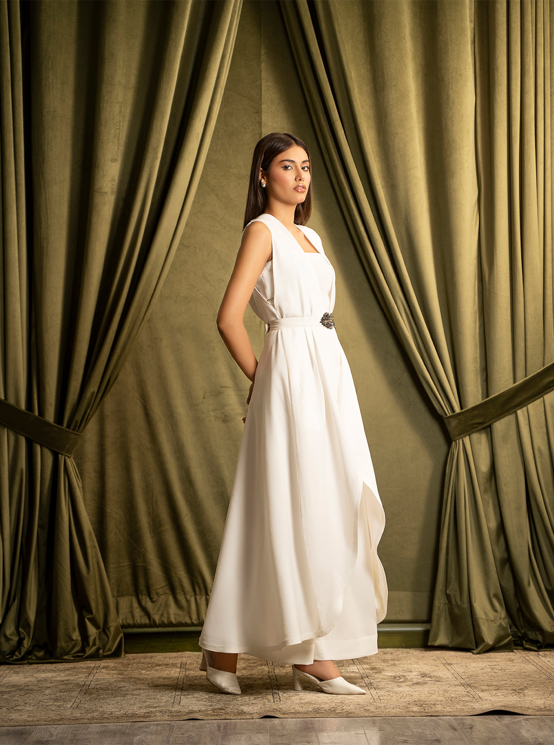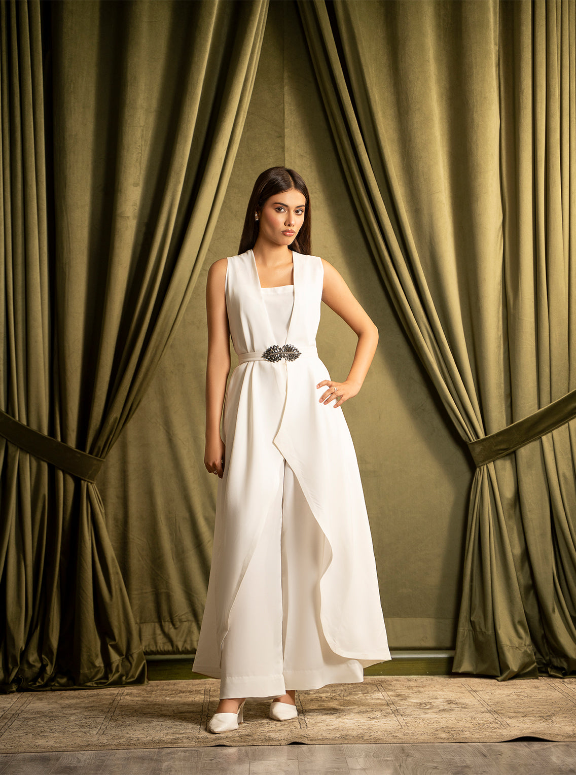 Elegant and flowy, these white pleated palazzo pants offer comfort with refined style. Their graceful movement adds a touch of sophistication to any look.